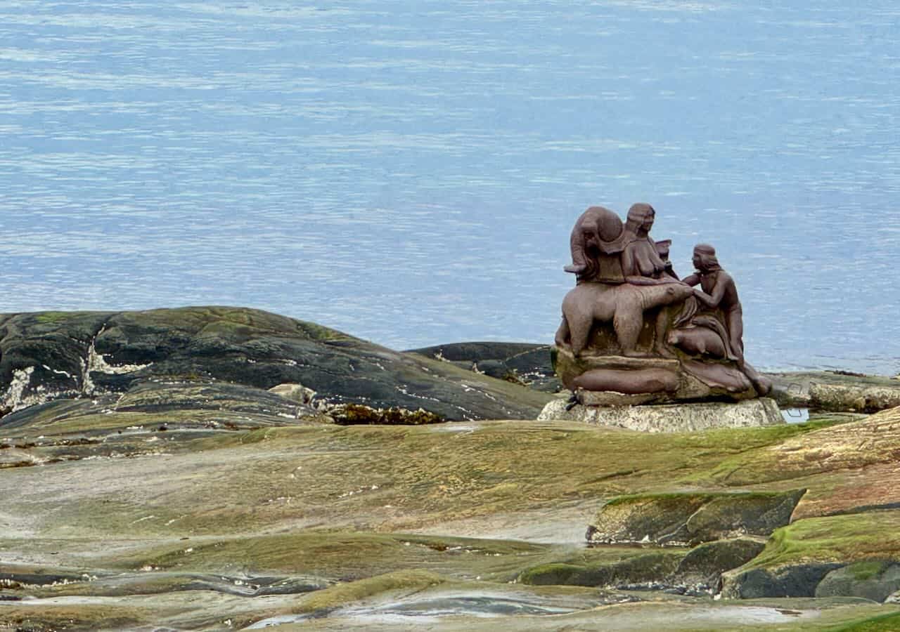 Etwas später gelangten wir zur zweiten Bronzeskulptur, die eine Gruppe schwimmender Robben darstellt. Diese „Amisut“ genannte Skulptur der Künstlerin Naja Rosing-Asvid entstand im Zusammenhang mit der Einführung der Selbstverwaltung in Grönland im Jahr 2009.