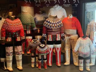 Ein paar Hundert Meter weiter erreichten wir schließlich das Nationalmuseum, dessen umfangreiche Sammlung viele interessante Objekte zur Geschichte der Inuit und ihrer Art zu leben, zu wohnen, zu jagen und sich zu kleiden bietet. Die Ausstellung umfasst unter anderem die berühmten Mumien aus dem 15. Jahrhundert aus Qilakitsoq im Nordwesten Grönlands (auf einer Insel in der Nähe von Uummannaq) sowie den gut erhaltenen Pearyland-Umiaq – das älteste nahezu intakte Hautboot der Welt.