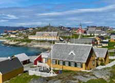 Zwischen den bunten Holzhäusern des alten Nuuk, an der Kirche vorbei, über der auf einem Hügel eine Statue des dänisch-norwegischen Missionars Hans Egede thront, ging es zum alten Kolonialhafen. Auf einer Anhöhe direkt oberhalb des Kolonialhafens hat man einen guten Blick auf Kirche und Statue.